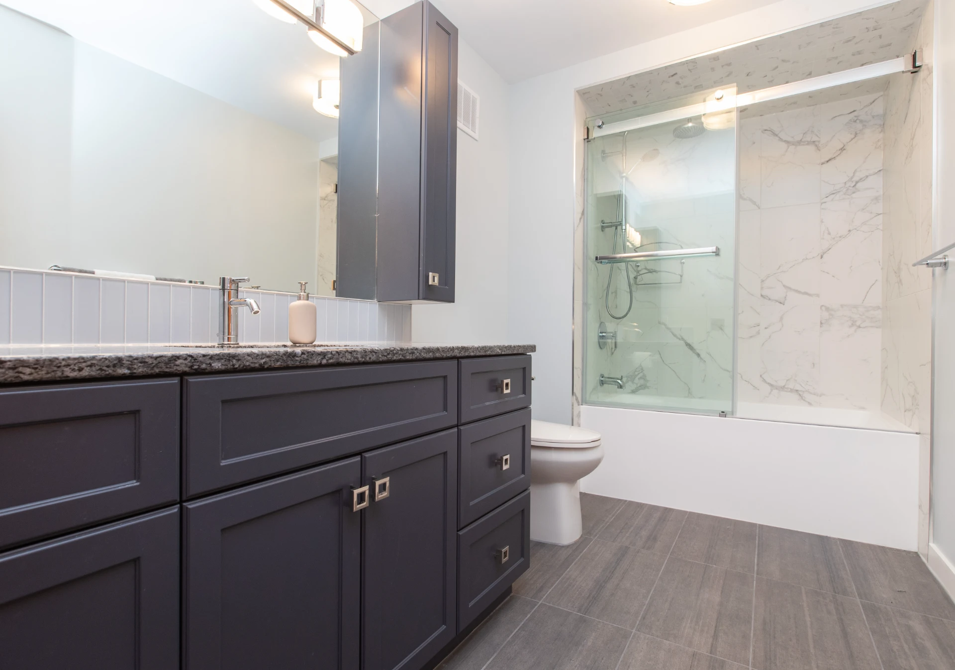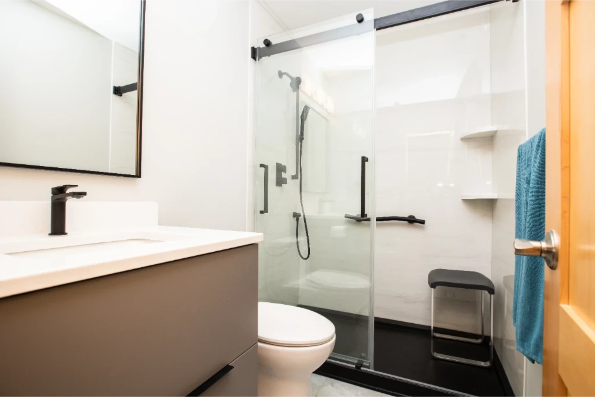 Just wanted to let you know how pleased we are with the new bathroom. Special thanks to Virginia for her help in choosing our hardware and her skill in matching component colours. Also, to Dustin and Brian who were professional, dedicated, helpful and respectful to us at all times. Thanks to you and your team. We would highly recommend your bathroom renovation business to anyone. Thanks again.