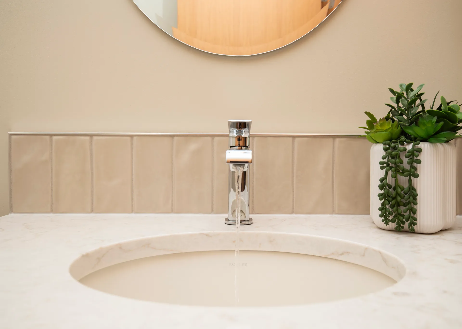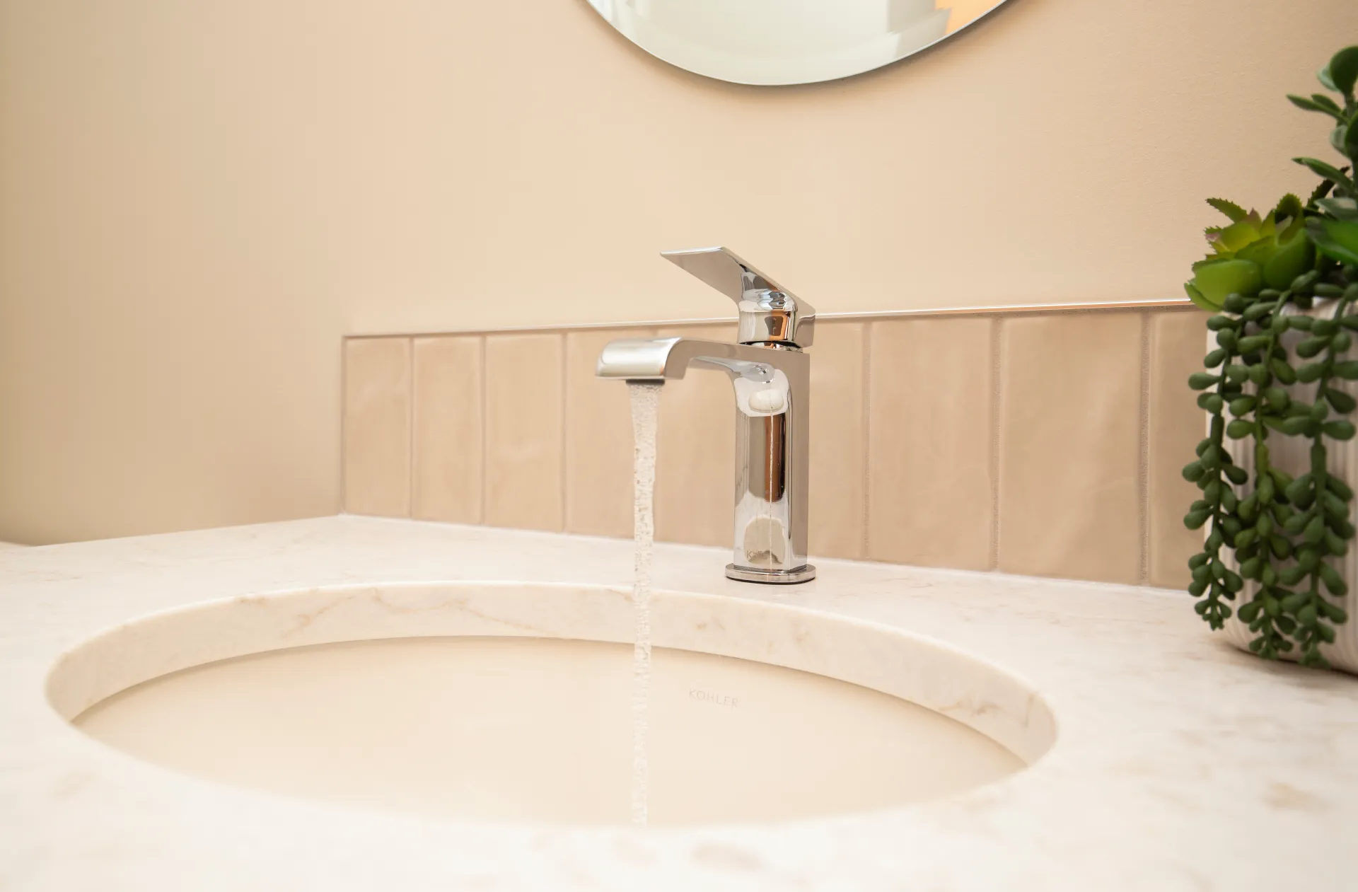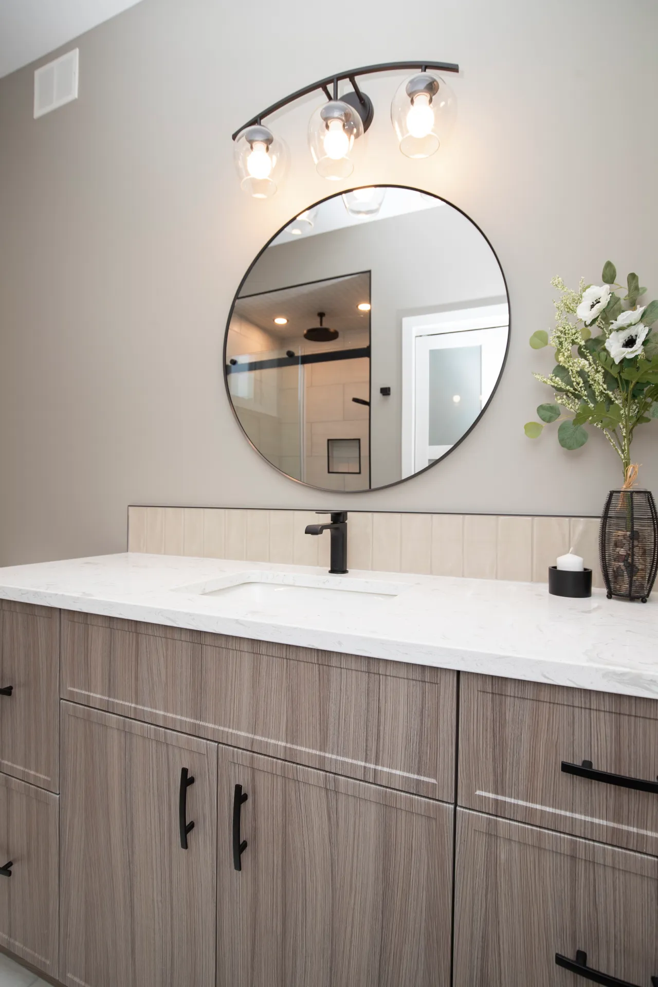 - Matte black fixtures for a bold, modern contrast